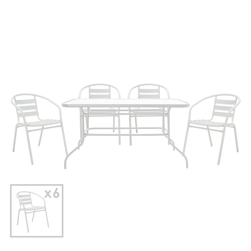 Τραπεζαρία κήπου Valor-Tade σετ 7τεμ pakoworld μέταλλο λευκό