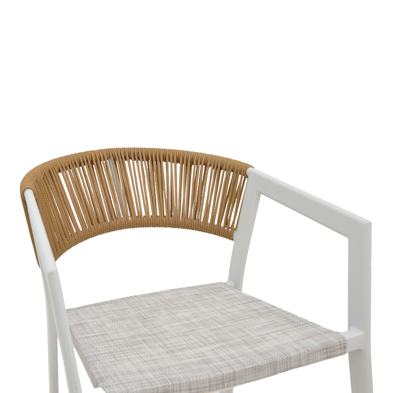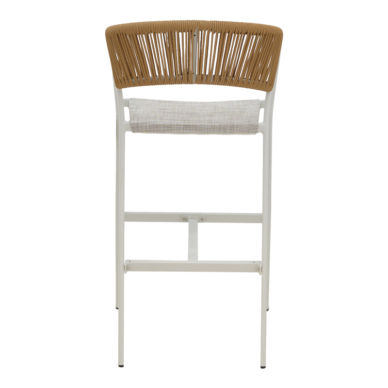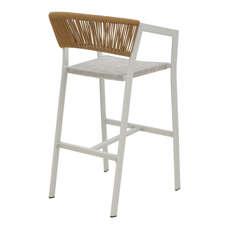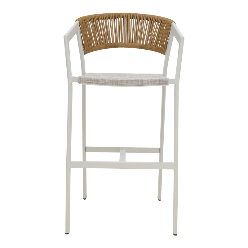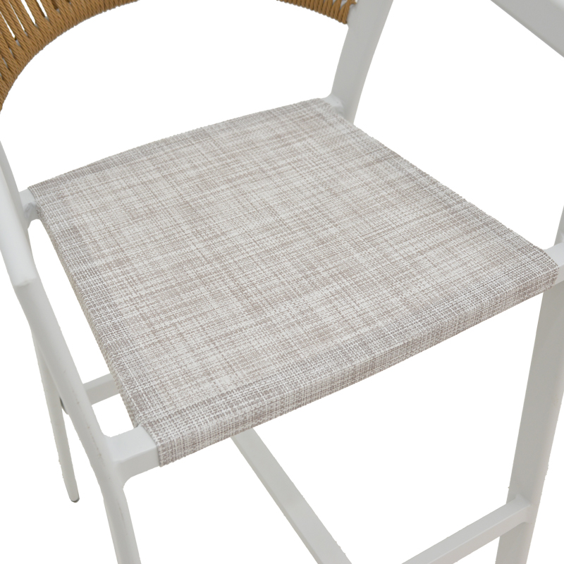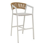 Σκαμπό μπαρ αλουμινίου Phoenix pakoworld στοιβαζόμενo λευκός σκελετός-textilene φυσικό rattan 53x58x103εκ