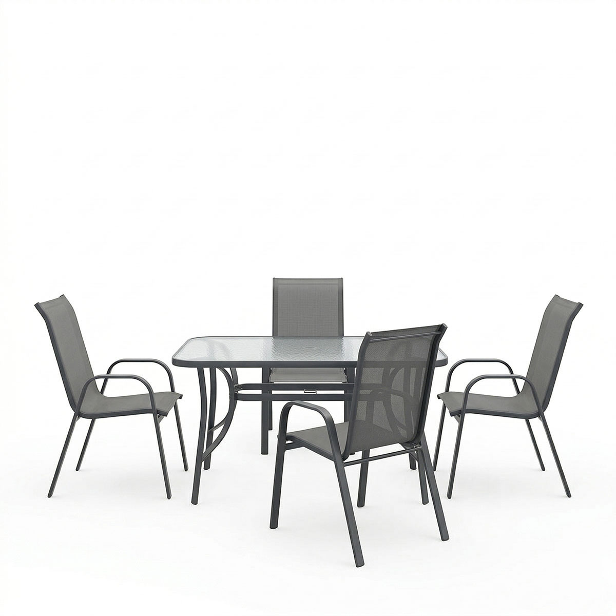 Η τραπεζαρία Ensure Calan συνδυάζει λειτουργικότητα, στυλ και ποιότητα, προσφέροντας μια εξαιρετική λύση για τη διαμόρφωση του κήπου ή του μπαλκονιού σας. Aποτελεί μια εξαιρετική επιλογή για όσους αναζητούν ένα κομψό, άνετο και ανθεκτικό σύνολο για να απολαύσουν τον καφέ ή το φαγητό τους, στον εξωτερικό τους χώρο.