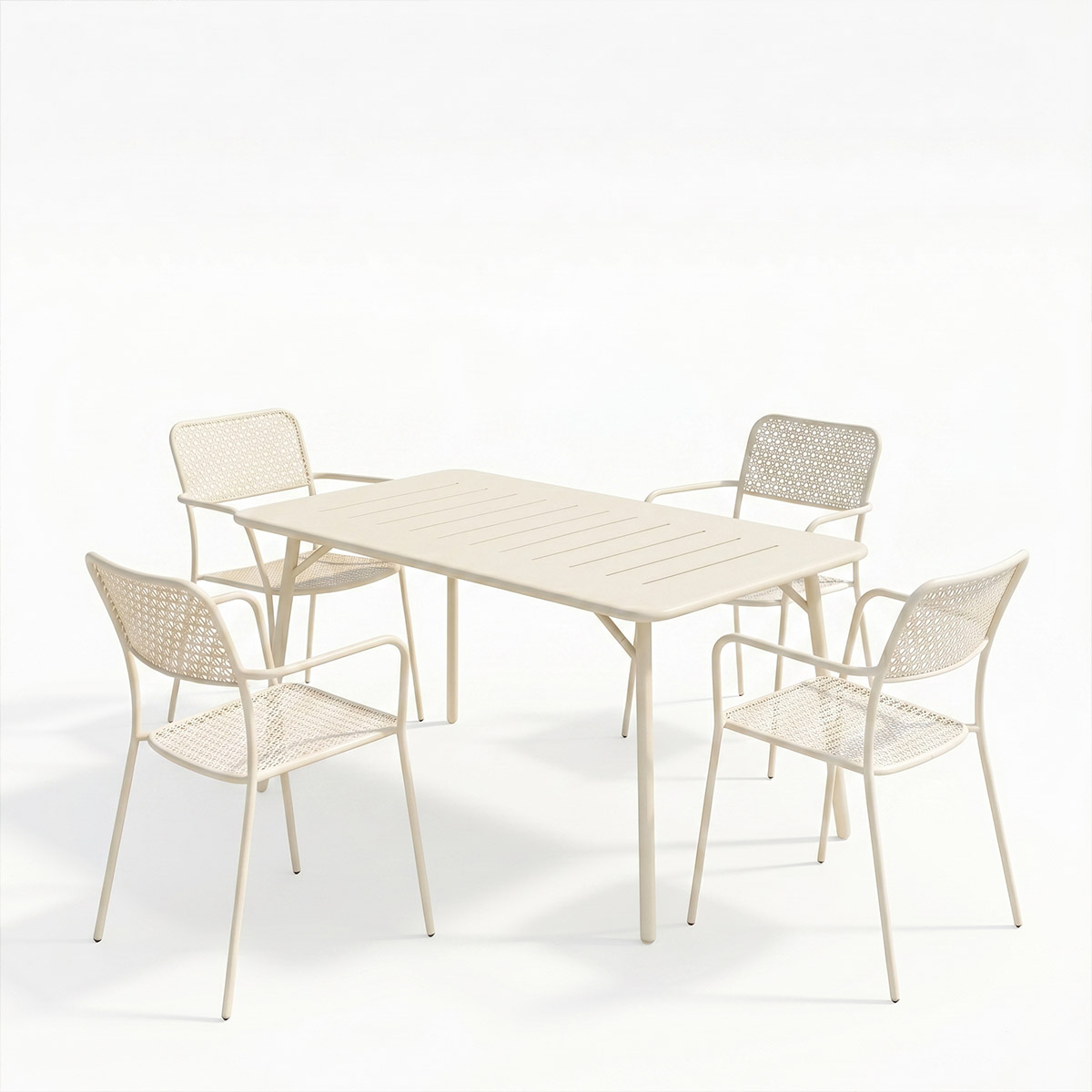 Αναβαθμίστε την αισθητική του κήπου ή της βεράντας σας με ένα σετ που συνδυάζει τον κομψό σχεδιασμό με την πρακτικότητα. Το σετ Federal & Moraja σε απαλό κρεμ χρώμα προσφέρει μια αίσθηση πολυτέλειας και φινέτσας, ιδανικό για στιγμές χαλάρωσης και γεύματα στο ύπαιθρο.