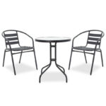 Τραπεζαρία Watson-Tade pakoworld σετ 3τεμ μέταλλο μαύρο-γυαλί Φ60×70εκ