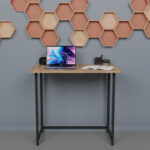 Γραφείο εργασίας πτυσσόμενο Thox pakoworld oak μελαμίνης-μαύρο μέταλλο 80x50x72εκ