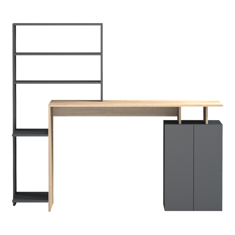 Το γραφείο εργασίας Meza συνδυάζει τη λειτουργικότητα και το σύγχρονο σχεδιασμό. Διαθέτει ένα ευρύχωρο γραφείο εργασίας, ιδανικό για υπολογιστή, μια ενσωματωμένη βιβλιοθήκη που προσφέρει άπλετο αποθηκευτικό χώρο για βιβλία, διακοσμητικά αντικείμενα ή φακέλους. Το μινιμαλιστικό του σχέδιο και τα ουδέτερα χρώματα το καθιστούν εύκολο να ταιριάξει σε οποιοδήποτε χώρο.