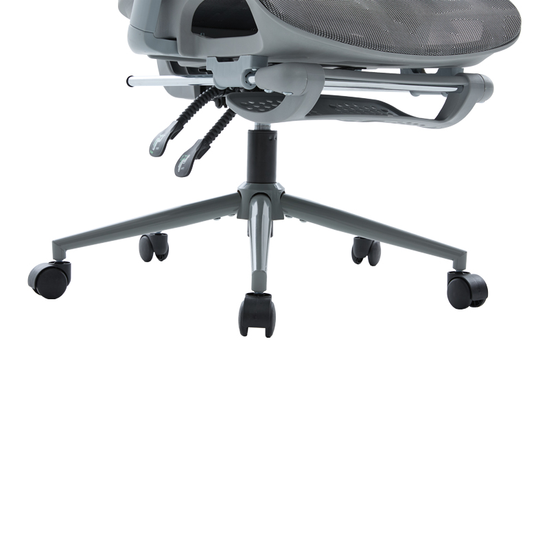• Υλικά & Κατασκευή: Η επιφάνεια είναι κατασκευασμένη από ενισχυμένο διχτυωτό (thickening mesh) ύφασμα σε γκρι χρώμα, εξασφαλίζοντας άριστη διαπνοή και ανθεκτικότητα. Ο σκελετός είναι από PP (Πολυπροπυλένιο), ενώ η στιβαρή βάση (350mm) είναι μεταλλική τύπου KD (Knock-Down), προσδίδοντας σταθερότητα. Οι τροχοί είναι κατασκευασμένοι για να προσφέρουν ομαλή και αθόρυβη κύλιση.