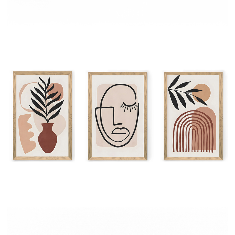 Ανακαλύψτε τη δύναμη της γεωμετρίας με ένα σετ τριών πινάκων που φέρνει την απόλυτη αρμονία στον χώρο σας. Με επιρροές από το Boho Style, η συλλογή αυτή χρησιμοποιεί ημικύκλια, κύκλους και κάθετες γραμμές για να δημιουργήσει έναν οπτικό διάλογο που καθησυχάζει το βλέμμα και αναβαθμίζει το περιβάλλον.