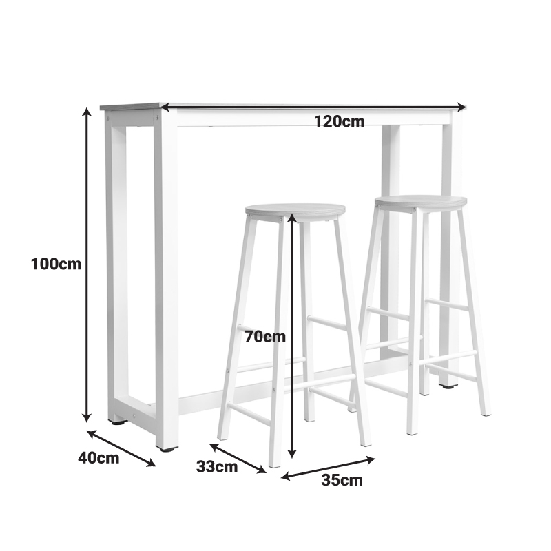 Σετ τραπέζι μπαρ Marle pakoworld 3τμχ φυσικό-λευκό πόδι 120x40x100εκ