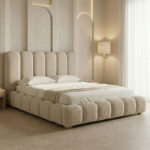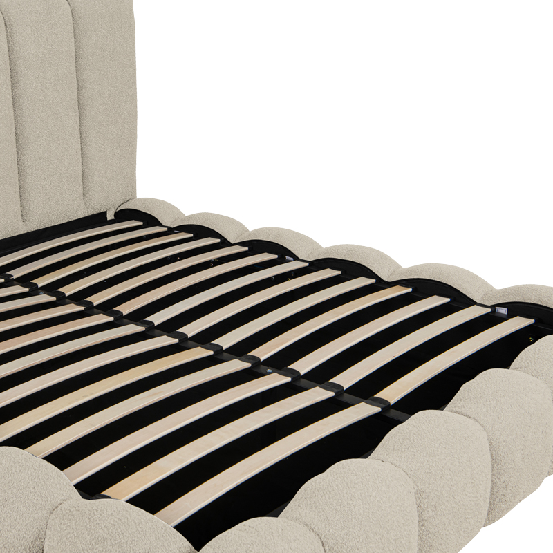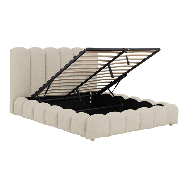 Αναβαθμίστε την κρεβατοκάμαρά σας με αυτό το εντυπωσιακό κρεβάτι, που συνδυάζει την υψηλή αισθητική με την πρακτική αποθήκευση. Το κυρίαρχο στυλ χαρακτηρίζεται από ανάγλυφα, καμπυλωτά τμήματα προσδίδοντας μια bohemian πολυτέλεια και μια αίσθηση απαλότητας στον χώρο.