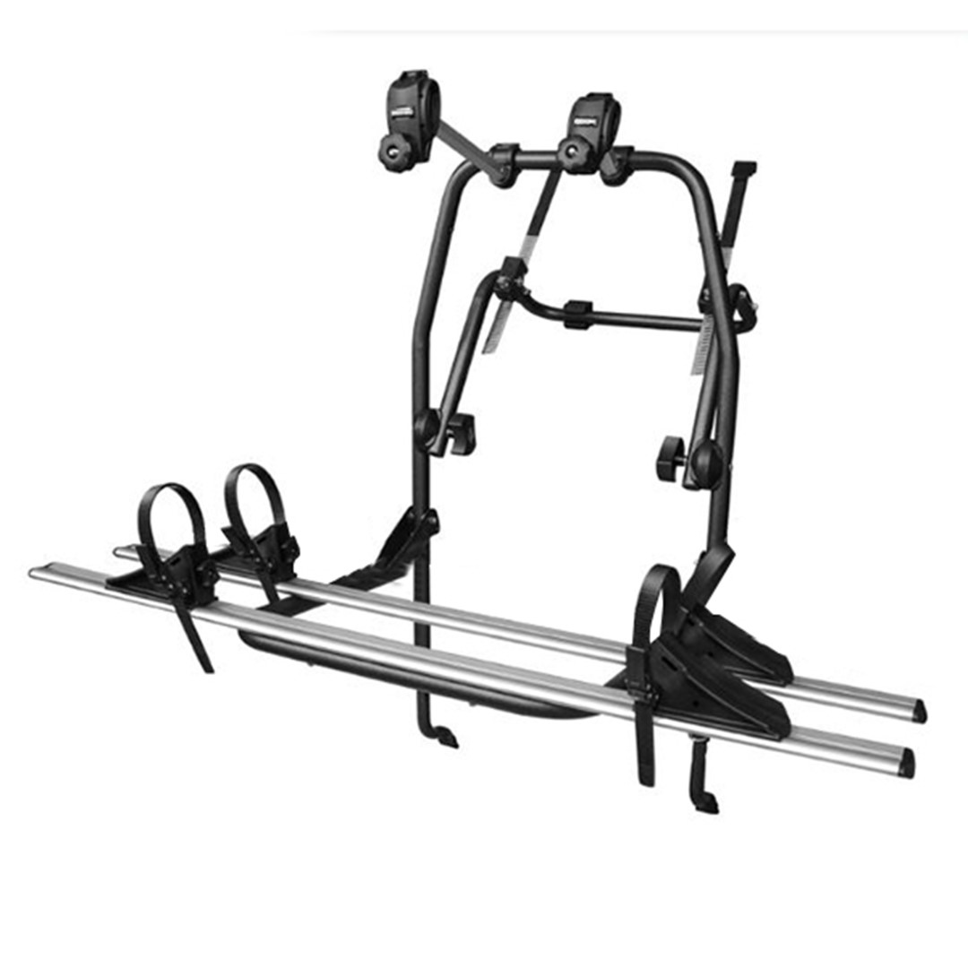 Στο πάνω μέρος έχει 2 ρυθμιζόμενα μπράτσα με ροδέλες για τέλεια προσαρμογή επάνω στο σκελετό των ποδηλάτων, συγκρατώντας τα σταθερά κατά τη μεταφορά ενώ παρέχεται και η δυνατότητα χρήσης πρόσθετης κλειδαριάς (δεν περιλαμβάνεται – πωλείται ξεχωριστά) στο κάθε ένα από αυτά. Στο κάτω μέρος οι ράγες (βέργες) συγκράτησης των ελαστικών είναι κατασκευασμένες από αλουμίνιο και η κάθε μία διαθέτει στα άκρα της 2 κυλιόμενους ιμάντες δέσης (δέστρες) για να συγκρατούν με απόλυτη ασφάλεια και σταθερότητα τους τροχούς των ποδηλάτων.