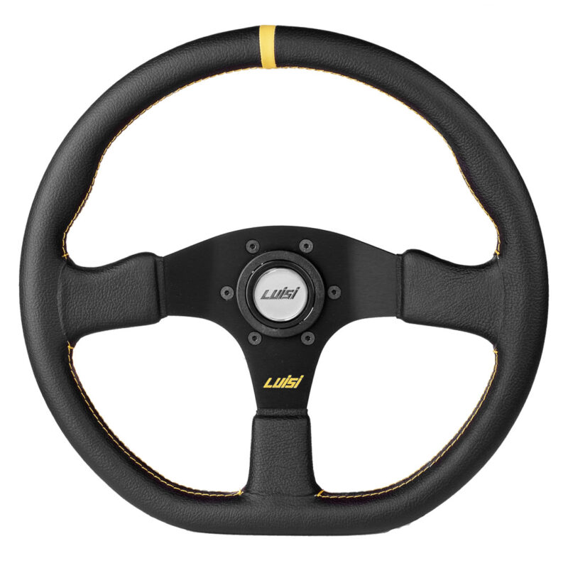 Τιμόνι αυτοκινήτου της CENTURY σειράς από την εταιρία LUISI, ιταλικής προελεύσεως σε μαύρο χρώμα και ασημί διακοσμητικό καπάκι με logo στο κέντρο του, κατασκευασμένο από πολυουρεθάνη. Διαθέτει λαβή με υφή δερματίνης και 3 ακτίνες (μπράτσα) σε καμπυλωτή γραμμή. Έχει universal εφαρμογή, για να ταιριάζει στα περισσότερα μοντέλα αυτοκινήτων και προσφέρει ασφαλές, άνετο κράτημα, προσδίδοντας παράλληλα μία μοναδική κομψότητα στο εσωτερικό του οχήματος. Εύκολη και γρήγορη τοποθέτηση.
