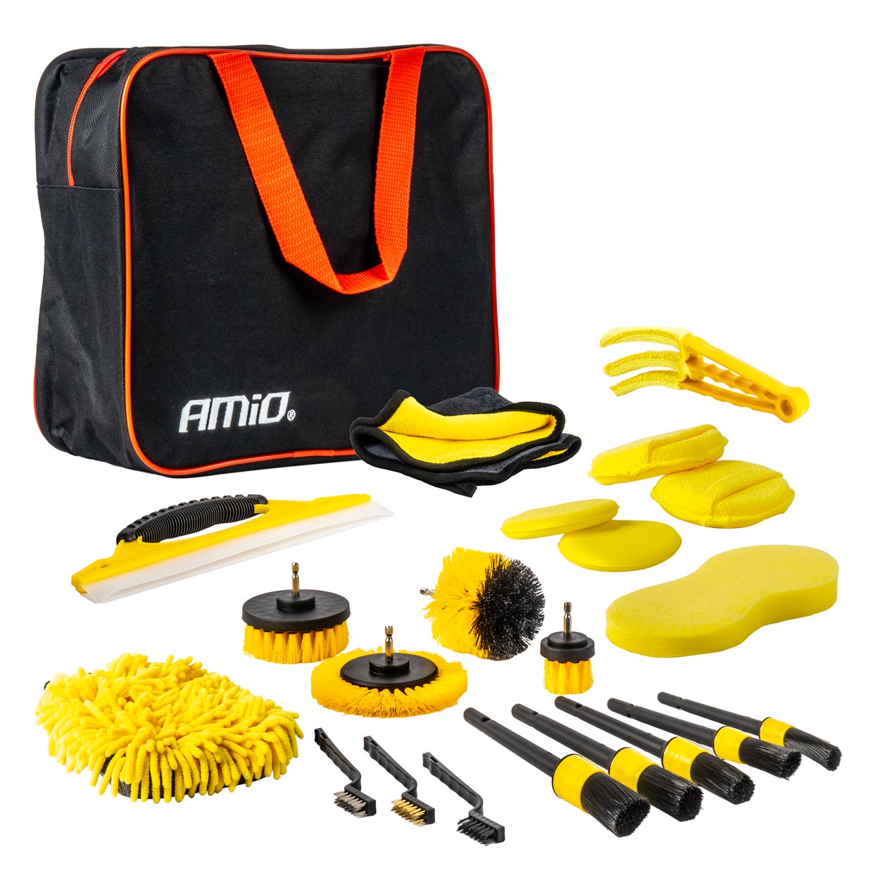 ΒΟΥΡΤΣΕΣ ΚΑΘΑΡΙΣΜΟΥ ΚΑΙ ΓΥΑΛΙΣΜΑΤΟΣ ΣΕΤ 21ΤΕΜ ΓΙΑ ΔΡΑΠΑΝΟ ΣΕ ΤΣΑΝΤΑ ΚΙΤΡΙΝΟ ΧΡΩΜΑ AMIO – 21 Τεμ.