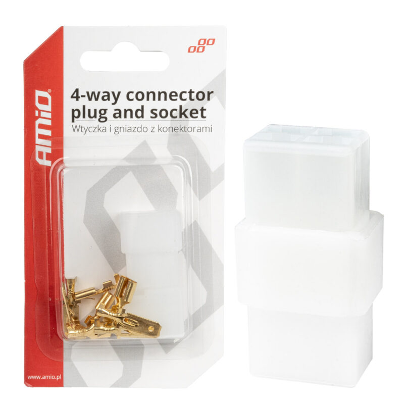 Φίσα σύνδεσης καλωδίων 4 υποδοχών με πλαστικό κούμπωμα, από την εταιρεία ΑΜΙΟ, πολωνικής προέλευσης.
