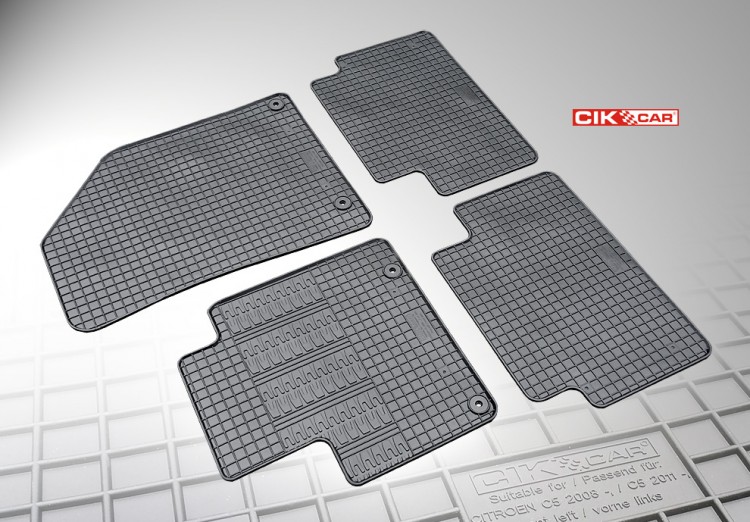 Πατάκια αυτοκινήτου από την εταιρία CIK, πολωνικής προέλευσης, σχεδιασμένα για να ταιριάζουν ακριβώς στις διαστάσεις του εκάστοτε οχήματός (μαρκέ) και κατασκευασμένα από υψηλής ποιότητας αντιχαρακτικό λάστιχο σε μαύρο χρώμα, χαρίζοντας εξαιρετική αντοχή για χρήση μακράς διάρκειας. Έχουν αντιολισθητικό πάτο με υποδοχές για κουμπώματα (αν διαθέτει το αυτοκίνητο) για καλύτερη σταθερότητα και πρόσφυση στο δάπεδο, ώστε να παραμένουν σταθερά χωρίς να μετακινούνται από τη θέση τους κατά την είσοδο/έξοδο των επιβατών. Το ανάγλυφο μοτίβο και οι ελαφρώς ανασηκωμένες άκρες τους διατηρούν το εσωτερικό της καμπίνας καθαρό, συγκρατούν όλη τη βρωμιά, σκόνη, λάσπες, υγρασία, κτλ. και κάνουν την αφαίρεση των ρύπων πολύ πιο εύκολη κατά το καθάρισμα. Είναι κατάλληλα για όλες τις εποχές, ανθεκτικά στο χρόνο και παρέχουν υψηλή προστασία. Πλένονται και καθαρίζονται πολύ εύκολα, διατηρώντας το αρχικό τους σχήμα. Εύκολη και γρήγορη τοποθέτηση.