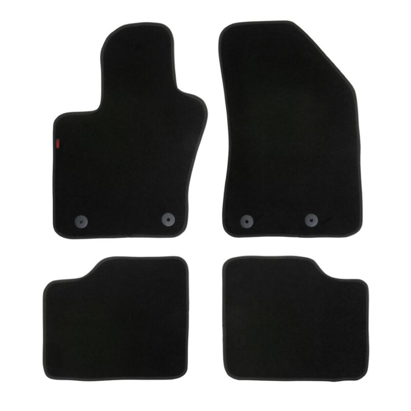 Πατάκια αυτοκινήτου από την εταιρία LAMPA, ιταλικής προέλευσης, κατασκευασμένα από υψηλής ποιότητας μοκέτα – 100% πολυπροπυλένιο – σε μαύρο χρώμα με περιμετρικό φινίρισμα από βελούρ ρέλι (απομίμηση βελούδου), σχεδιασμένα για να ταιριάζουν ακριβώς στις διαστάσεις του δαπέδου του εκάστοτε οχήματος – μαρκέ προϊόν. Είναι αδιάβροχα και διαθέτουν αντιολισθητικό πάτο ενισχυμένο με gel στο πίσω μέρος τους για καλύτερη πρόσφυση στο δάπεδο, καθώς και κουμπιά στερέωσης fix-points για όσα οχήματα είναι εξοπλισμένα με αντίστοιχες εργοστασιακές υποδοχές για να παραμένουν σταθερά στο πάτωμα της καμπίνας κατά την είσοδο/έξοδο των επιβατών.