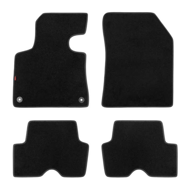 Πατάκια αυτοκινήτου από την εταιρία LAMPA, ιταλικής προέλευσης, κατασκευασμένα από υψηλής ποιότητας μοκέτα – 100% πολυπροπυλένιο – σε μαύρο χρώμα με περιμετρικό φινίρισμα από βελούρ ρέλι (απομίμηση βελούδου), σχεδιασμένα για να ταιριάζουν ακριβώς στις διαστάσεις του δαπέδου του εκάστοτε οχήματος – μαρκέ προϊόν. Είναι αδιάβροχα και διαθέτουν αντιολισθητικό πάτο ενισχυμένο με gel στο πίσω μέρος τους για καλύτερη πρόσφυση στο δάπεδο, καθώς και κουμπιά στερέωσης fix-points για όσα οχήματα είναι εξοπλισμένα με αντίστοιχες εργοστασιακές υποδοχές για να παραμένουν σταθερά στο πάτωμα της καμπίνας κατά την είσοδο/έξοδο των επιβατών.