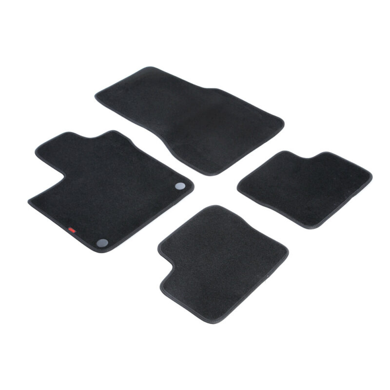 Πατάκια αυτοκινήτου από την εταιρία LAMPA, ιταλικής προέλευσης, κατασκευασμένα από υψηλής ποιότητας μοκέτα – 100% πολυπροπυλένιο – σε μαύρο χρώμα με περιμετρικό φινίρισμα από βελούρ ρέλι (απομίμηση βελούδου), σχεδιασμένα για να ταιριάζουν ακριβώς στις διαστάσεις του δαπέδου του εκάστοτε οχήματος – μαρκέ προϊόν. Είναι αδιάβροχα και διαθέτουν αντιολισθητικό πάτο ενισχυμένο με gel στο πίσω μέρος τους για καλύτερη πρόσφυση στο δάπεδο, καθώς και κουμπιά στερέωσης fix-points για όσα οχήματα είναι εξοπλισμένα με αντίστοιχες εργοστασιακές υποδοχές για να παραμένουν σταθερά στο πάτωμα της καμπίνας κατά την είσοδο/έξοδο των επιβατών.
