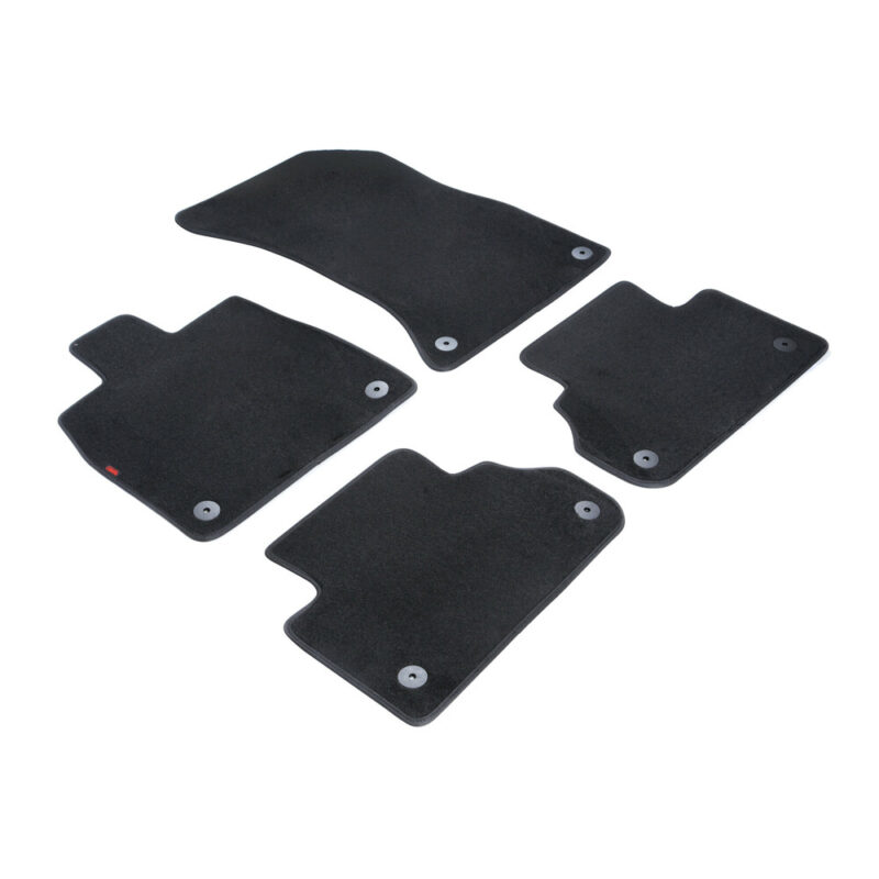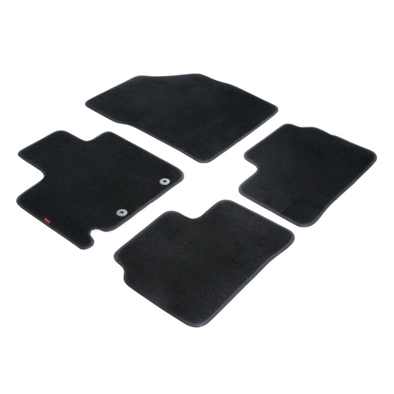 Πατάκια αυτοκινήτου από την εταιρία LAMPA, ιταλικής προέλευσης, κατασκευασμένα από υψηλής ποιότητας μοκέτα – 100% πολυπροπυλένιο – σε μαύρο χρώμα με περιμετρικό φινίρισμα από βελούρ ρέλι (απομίμηση βελούδου), σχεδιασμένα για να ταιριάζουν ακριβώς στις διαστάσεις του δαπέδου του εκάστοτε οχήματος – μαρκέ προϊόν. Είναι αδιάβροχα και διαθέτουν αντιολισθητικό πάτο ενισχυμένο με gel στο πίσω μέρος τους για καλύτερη πρόσφυση στο δάπεδο, καθώς και κουμπιά στερέωσης fix-points για όσα οχήματα είναι εξοπλισμένα με αντίστοιχες εργοστασιακές υποδοχές για να παραμένουν σταθερά στο πάτωμα της καμπίνας κατά την είσοδο/έξοδο των επιβατών.