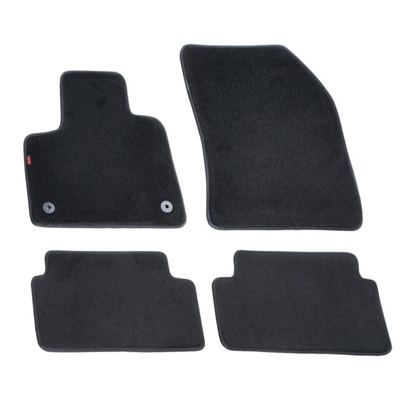 Πατάκια αυτοκινήτου από την εταιρία LAMPA, ιταλικής προέλευσης, κατασκευασμένα από υψηλής ποιότητας μοκέτα – 100% πολυπροπυλένιο – σε μαύρο χρώμα με περιμετρικό φινίρισμα από βελούρ ρέλι (απομίμηση βελούδου), σχεδιασμένα για να ταιριάζουν ακριβώς στις διαστάσεις του δαπέδου του εκάστοτε οχήματος – μαρκέ προϊόν. Είναι αδιάβροχα και διαθέτουν αντιολισθητικό πάτο ενισχυμένο με gel στο πίσω μέρος τους για καλύτερη πρόσφυση στο δάπεδο, καθώς και κουμπιά στερέωσης fix-points για όσα οχήματα είναι εξοπλισμένα με αντίστοιχες εργοστασιακές υποδοχές για να παραμένουν σταθερά στο πάτωμα της καμπίνας κατά την είσοδο/έξοδο των επιβατών.