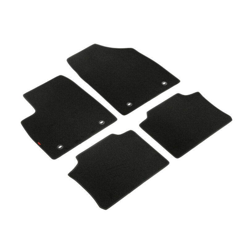 Πατάκια αυτοκινήτου από την εταιρία LAMPA, ιταλικής προέλευσης, κατασκευασμένα από υψηλής ποιότητας μοκέτα – 100% πολυπροπυλένιο – σε μαύρο χρώμα με περιμετρικό φινίρισμα από βελούρ ρέλι (απομίμηση βελούδου), σχεδιασμένα για να ταιριάζουν ακριβώς στις διαστάσεις του δαπέδου του εκάστοτε οχήματος – μαρκέ προϊόν. Είναι αδιάβροχα και διαθέτουν αντιολισθητικό πάτο ενισχυμένο με gel στο πίσω μέρος τους για καλύτερη πρόσφυση στο δάπεδο, καθώς και κουμπιά στερέωσης fix-points για όσα οχήματα είναι εξοπλισμένα με αντίστοιχες εργοστασιακές υποδοχές για να παραμένουν σταθερά στο πάτωμα της καμπίνας κατά την είσοδο/έξοδο των επιβατών.
