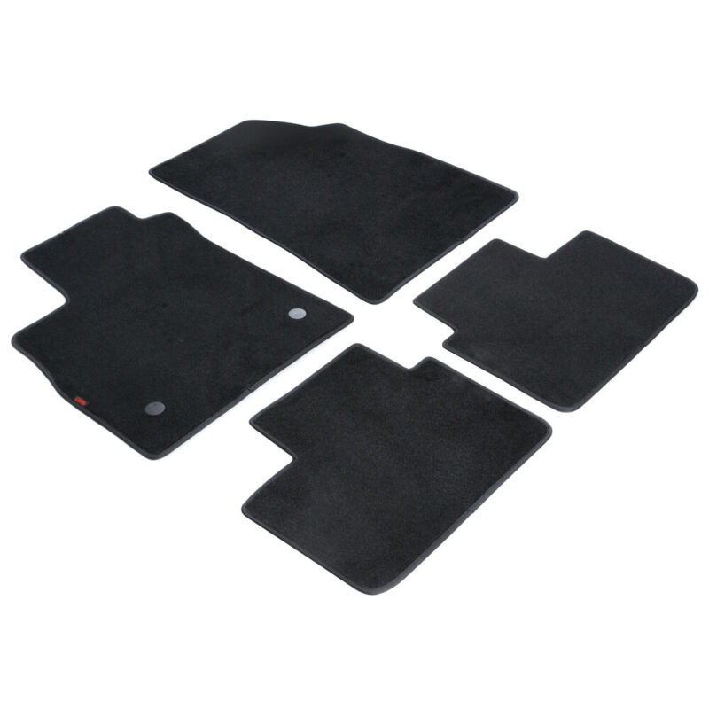 Πατάκια αυτοκινήτου από την εταιρία LAMPA, ιταλικής προέλευσης, κατασκευασμένα από υψηλής ποιότητας μοκέτα – 100% πολυπροπυλένιο – σε μαύρο χρώμα με περιμετρικό φινίρισμα από βελούρ ρέλι (απομίμηση βελούδου), σχεδιασμένα για να ταιριάζουν ακριβώς στις διαστάσεις του δαπέδου του εκάστοτε οχήματος – μαρκέ προϊόν. Είναι αδιάβροχα και διαθέτουν αντιολισθητικό πάτο ενισχυμένο με gel στο πίσω μέρος τους για καλύτερη πρόσφυση στο δάπεδο, καθώς και κουμπιά στερέωσης fix-points για όσα οχήματα είναι εξοπλισμένα με αντίστοιχες εργοστασιακές υποδοχές για να παραμένουν σταθερά στο πάτωμα της καμπίνας κατά την είσοδο/έξοδο των επιβατών.