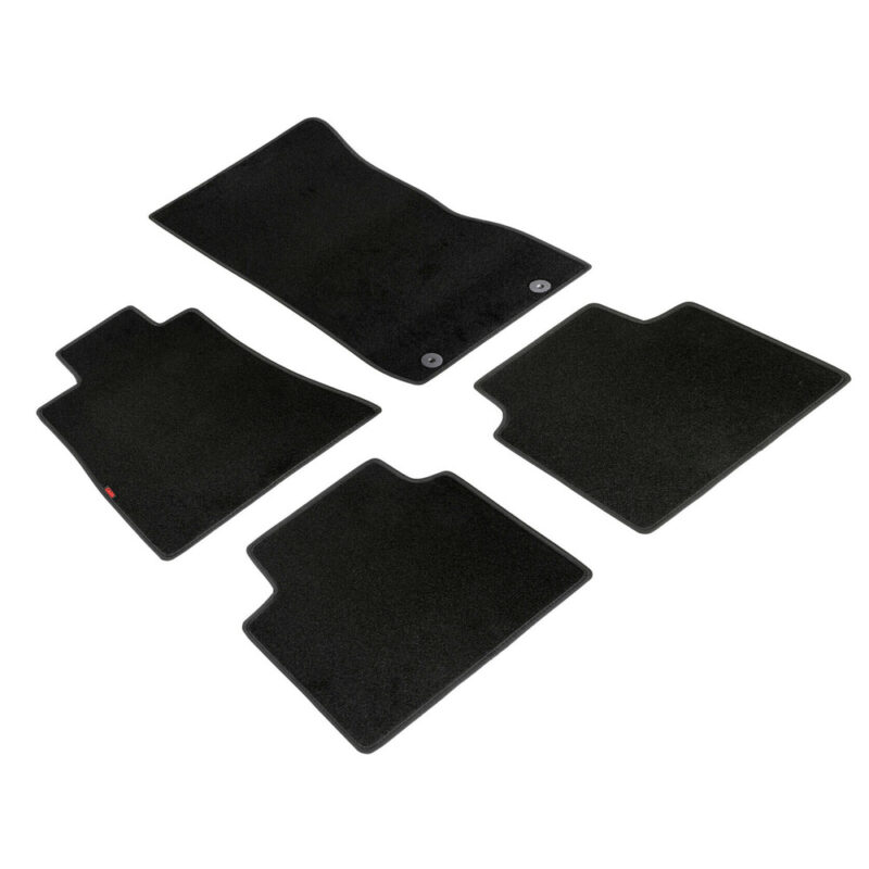 Πατάκια αυτοκινήτου από την εταιρία LAMPA, ιταλικής προέλευσης, κατασκευασμένα από υψηλής ποιότητας μοκέτα – 100% πολυπροπυλένιο – σε μαύρο χρώμα με περιμετρικό φινίρισμα από βελούρ ρέλι (απομίμηση βελούδου), σχεδιασμένα για να ταιριάζουν ακριβώς στις διαστάσεις του δαπέδου του εκάστοτε οχήματος – μαρκέ προϊόν. Είναι αδιάβροχα και διαθέτουν αντιολισθητικό πάτο ενισχυμένο με gel στο πίσω μέρος τους για καλύτερη πρόσφυση στο δάπεδο, καθώς και κουμπιά στερέωσης fix-points για όσα οχήματα είναι εξοπλισμένα με αντίστοιχες εργοστασιακές υποδοχές για να παραμένουν σταθερά στο πάτωμα της καμπίνας κατά την είσοδο/έξοδο των επιβατών.
