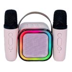 Σετ= ηχείο bluetooth με 2 μικρόφωνα για καραόκε • Με φως Ηχείο: 8,5×8,5×6,5cm Μικρόφωνα: 13,5×3,5cm