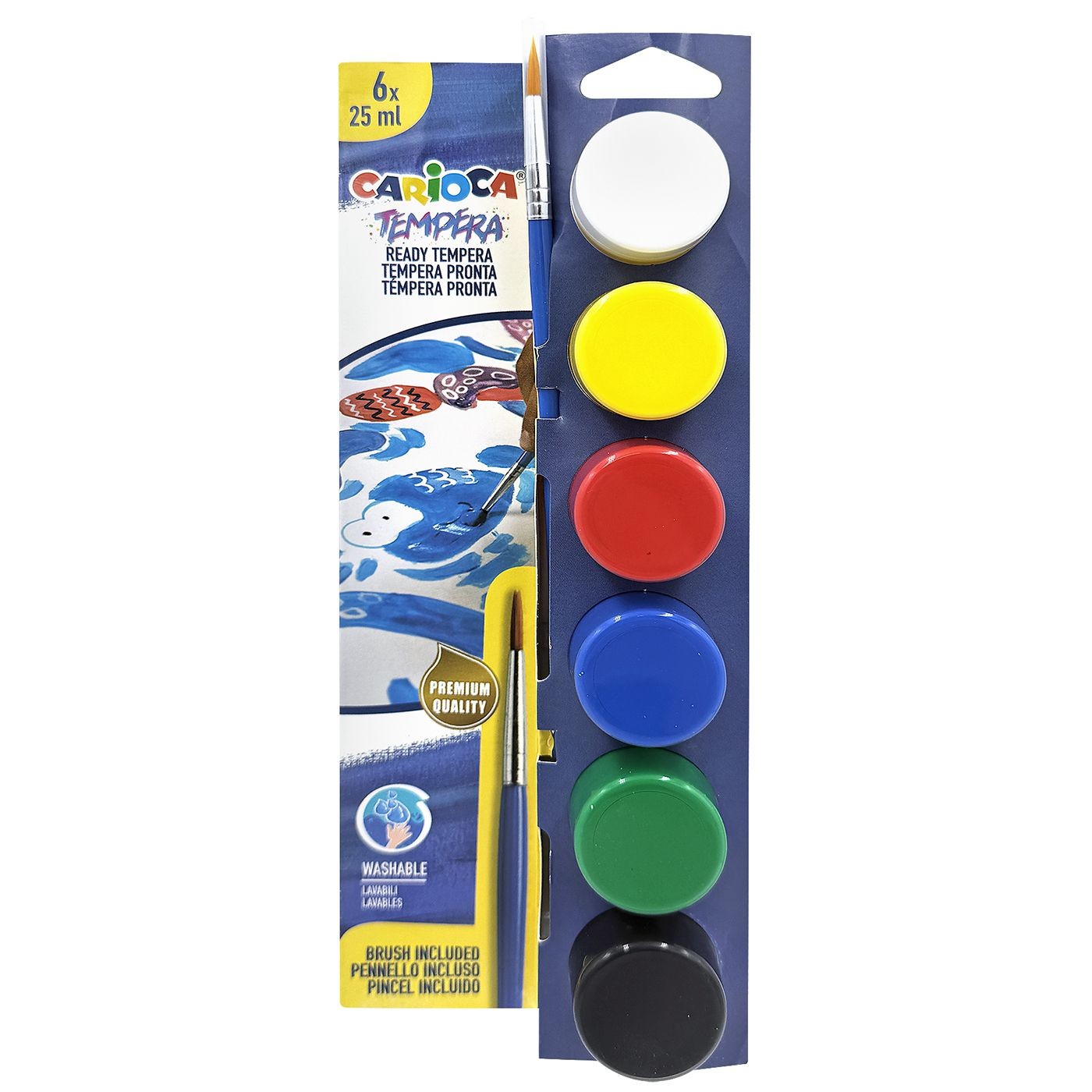 Σετ=6 χρώματα Τέμπερα δακτυλομπογιά & πινέλο 6x25mL