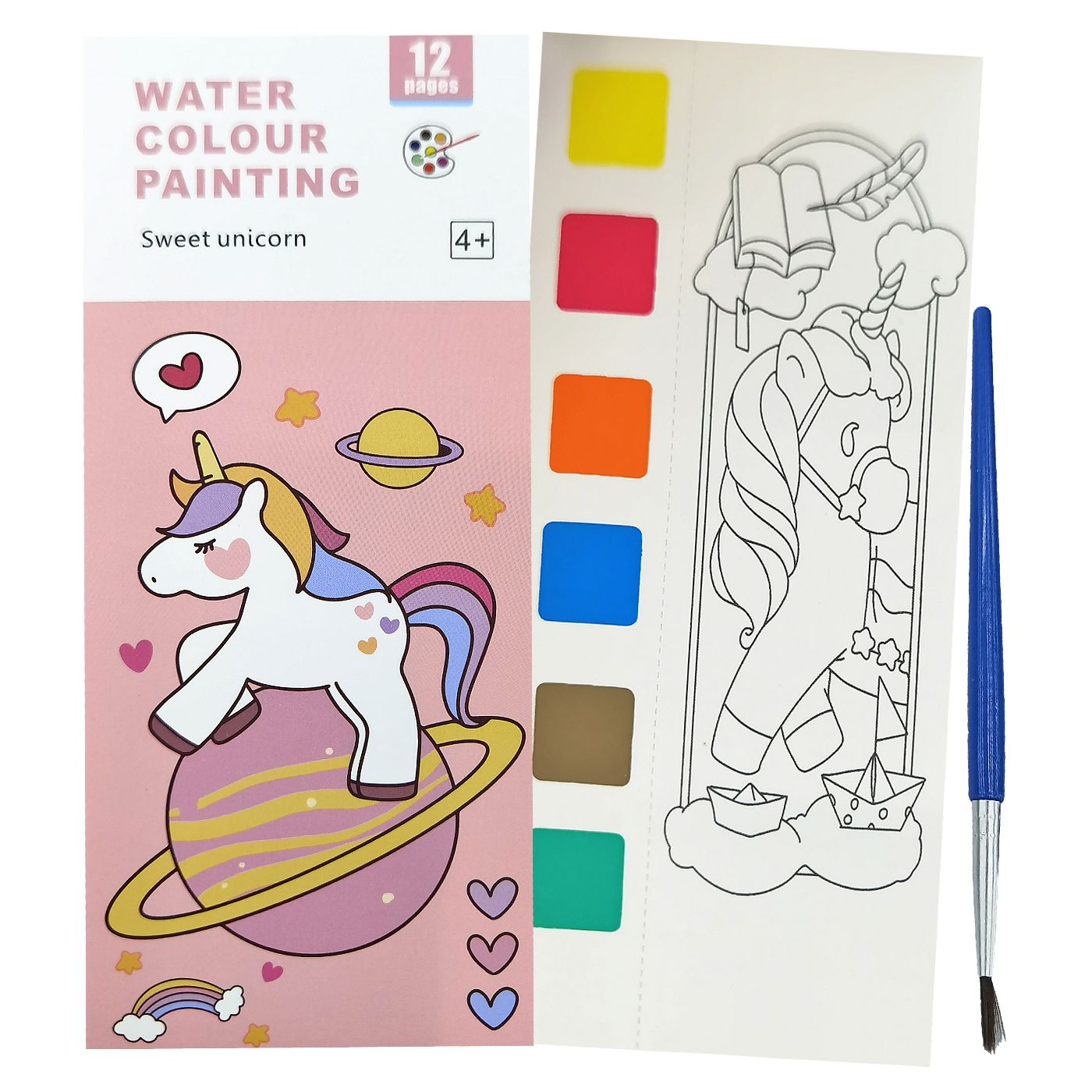 Σετ=μπλοκ 12 φύλλων χρωματισμού & πινέλο, κάθε φύλλο περιέχει νερομπογιές 19x8cm