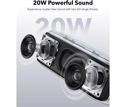 Απολαύστε πλούσιο στερεοφωνικό ήχο 20W και καθαρότητα με αυτό το ασύρματο ηχείο Bluetooth που διαθέτει διπλά προγράμματα οδήγησης πλήρους εμβέλειας.