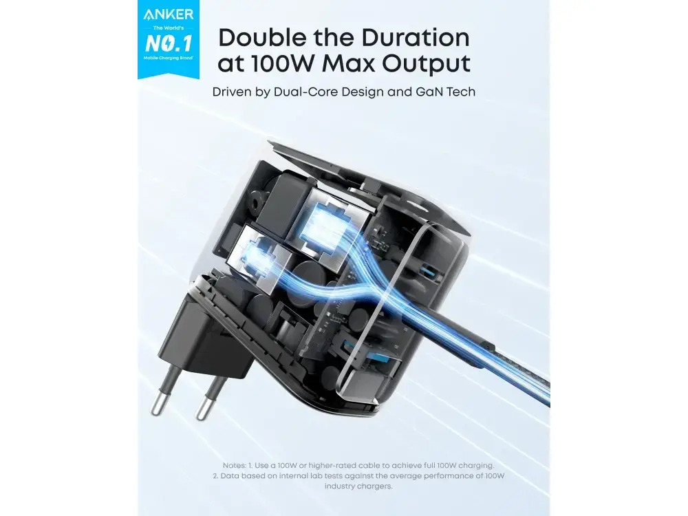 Μην κάνετε συμβιβασμούς στην ταχύτητα. Η προηγμένη τεχνολογία GaN προσφέρει σταθερή ισχύ έως και 100W σε κάθε θύρα USB-C, επιτρέποντας την ταχύτατη φόρτιση απαιτητικών συσκευών όπως το MacBook Pro, το Steam Deck ή το HP Chromebook. Είτε εργάζεστε, είτε παίζετε παιχνίδια, ο φορτιστής Anker εξασφαλίζει ότι η ενέργειά σας δεν θα εξαντληθεί ποτέ, αντικαθιστώντας τους ογκώδεις μετασχηματιστές με μια κομψή και πανίσχυρη λύση.