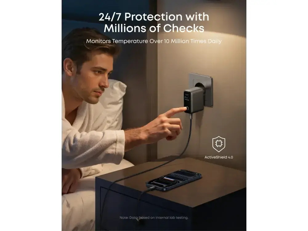 Η ασφάλεια της συσκευής σας είναι αδιαπραγμάτευτη. Το σύστημα ActiveShield™ 4.0 παρακολουθεί τη θερμοκρασία περισσότερες από 1.000.000 φορές την ημέρα, αποτρέποντας την υπερθέρμανση. Ο σχεδιασμός gravity-balanced και οι ενισχυμένες επαφές εξασφαλίζουν ότι ο φορτιστής θα παραμένει σταθερά συνδεδεμένος στην πρίζα, παρέχοντας μια αξιόπιστη και ξένοιαστη εμπειρία φόρτισης ακόμα και για τις πιο ευαίσθητες συσκευές σας.
