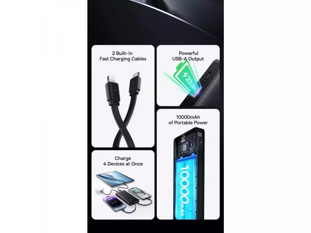 To Baseus Airpow Lite 10000 mAh είναι εξοπλισμένo με θύρα USB-C και θύρα USB-A για την τροφοδοσία κινητών συσκευών και περιλαμβάνει δύο διπλά καλώδια USB-C και Lightning.