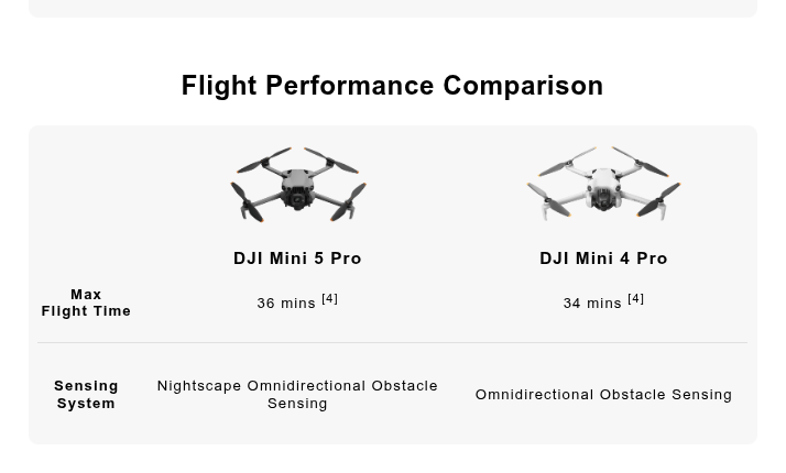 Με την τυπική μπαταρία χωρητικότητας 2788mAh, το Mini 5 Pro πετυχαίνει έως 36 λεπτά πτήσης, ενώ με την Plus Battery ο χρόνος μπορεί να επεκταθεί ως και 52 λεπτά πτήσης, προσφέροντας μεγαλύτερη ευελιξία σε ταξίδια και μακρύτερες λήψεις.