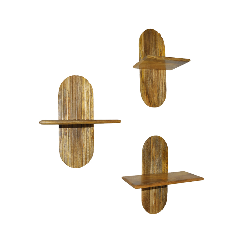 17,50€Ραφιέρα τοίχου Arcadia 3 τεμ pakoworld μασίφ ξύλο μάνγκο σε φυσική απόχρωση 30x20x40εκ