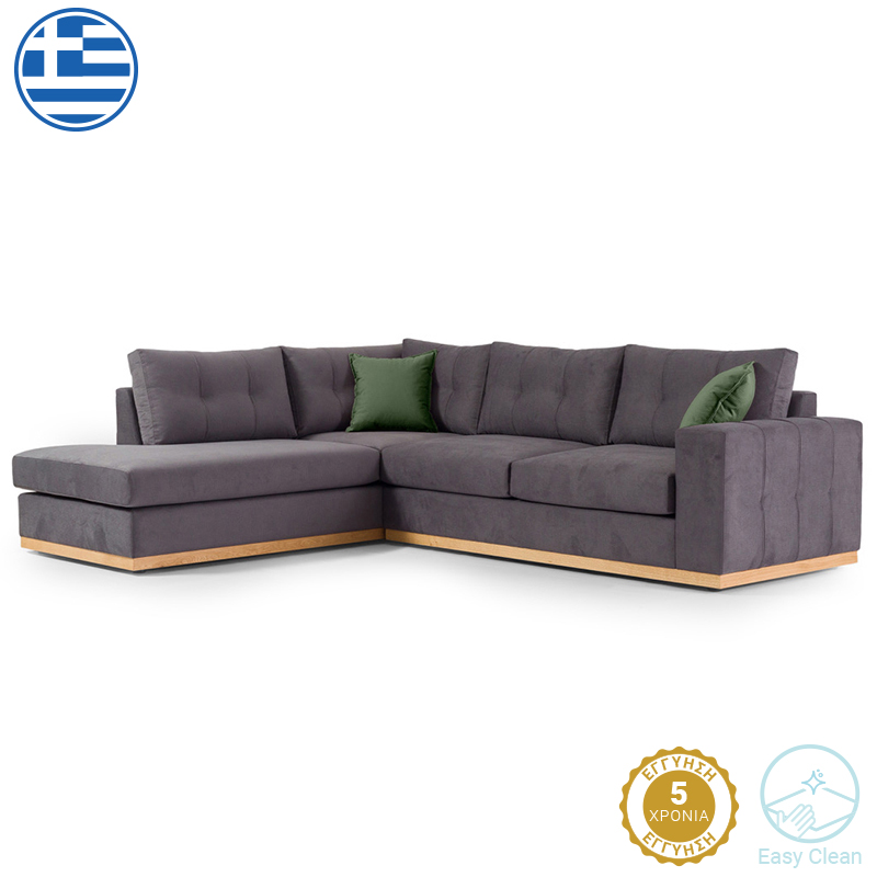 Γωνιακός καναπές αριστερή γωνία Boston pakoworld ύφασμα κυπαρισσί-ανθρακί 280x225x90εκ