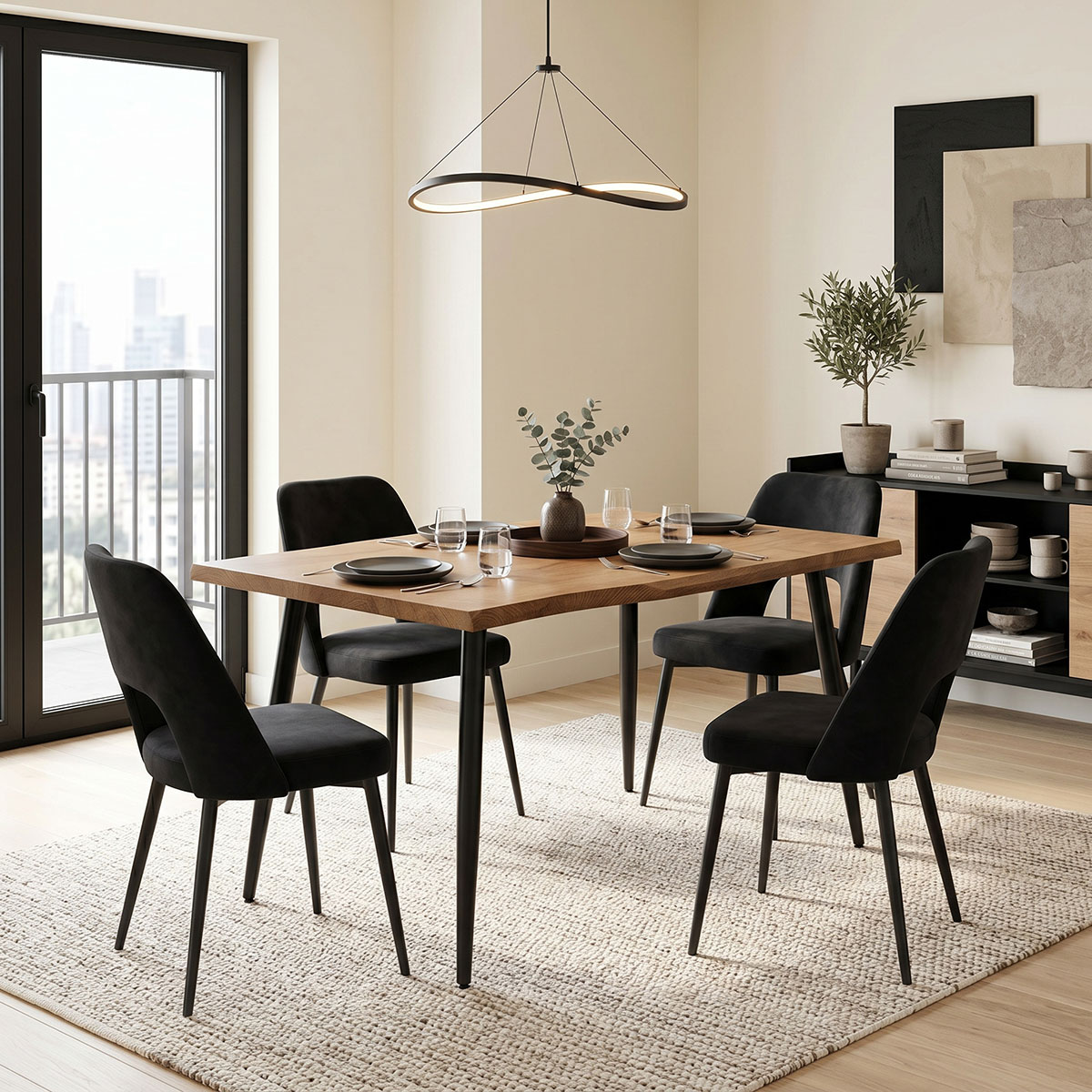 Pakoworld Τραπεζαρία με Καρέκλες Murde Μαύρο και Τραπέζι Neve Μαύρο 140x80x75εκ Σετ 5τεμ