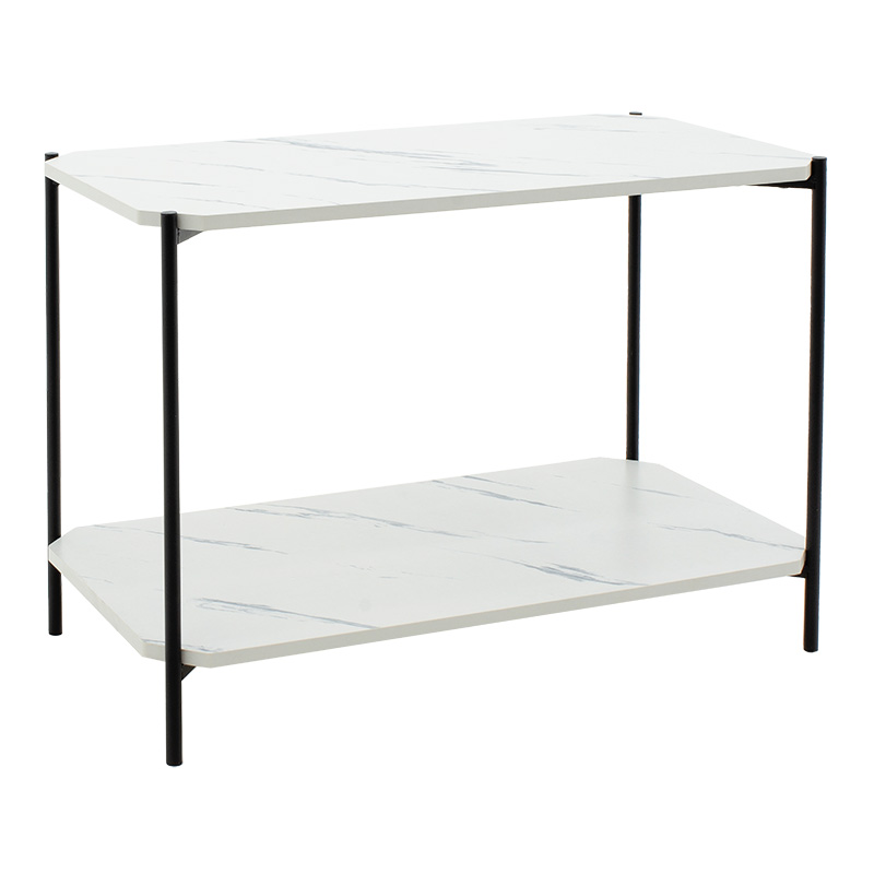 Pakoworld Βοηθητικό τραπέζι Mara MDF λευκό μαρμάρου-μαύρο 80x40x55cm