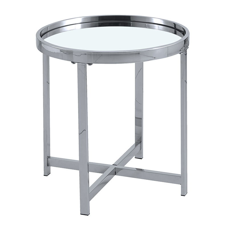 Βοηθητικό τραπέζι σαλονιού Tristan pakoworld μέταλλο ασημί-γυαλί Φ55×55εκ